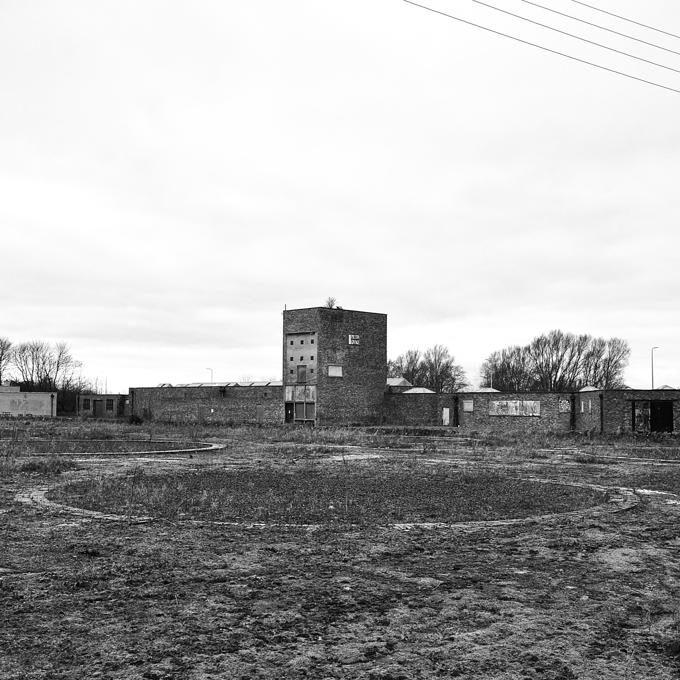 Beehive Kilns employs cyanotype on tile to print an archival photograph of the kilns at Prestongrange in 1966 as taken by Professor John R. Hume. The second work shows an image taken in 2025, from exactly the same angle, showing the emptiness of the site today.